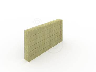 Rockvent Dual is een waterafstotende isolatieplaat met een harde toplaag (ca. 60 kg/m³), voorzien van een ruitraster en een flexibele achterzijde (ca. 40 kg/m³).