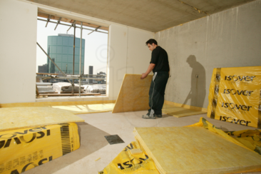 Sonefloor is een zeer drukvaste onbeklede glaswolplaat ter verbetering van contactgeluidsisolatie van vloeren